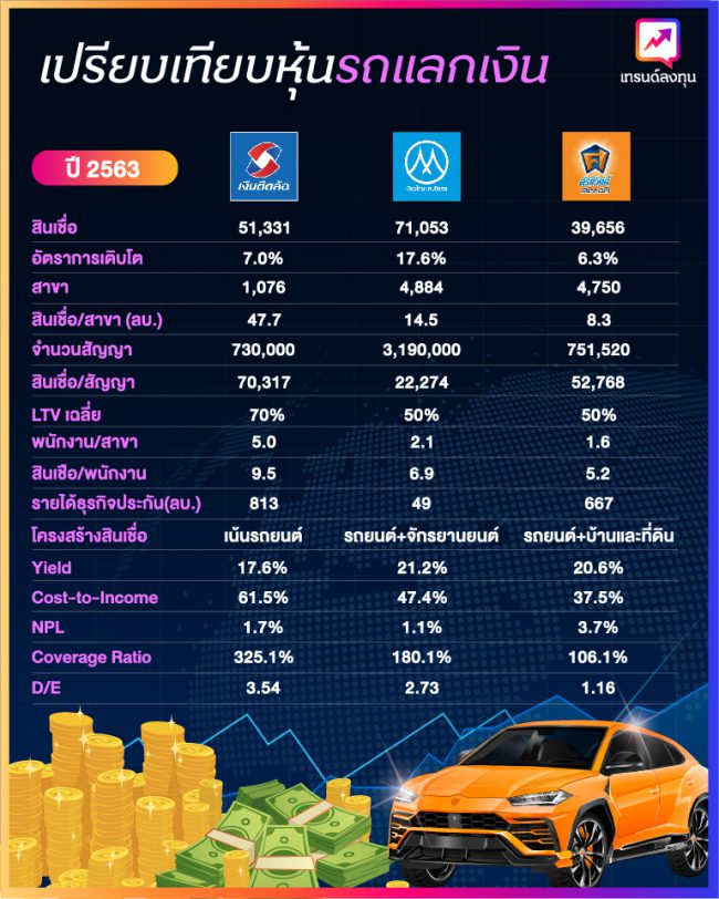ในปี 2563 MTC มีอัตราการเติบโตสูงสุด โดยทั้ง TIDLOR และ SAWAD มีการเติบโตใกล้เคียงกัน เพราะทำรถยนต์เหมือนกันทั้งคู่